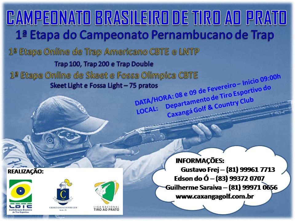 O CAXANGÁ GOLF & COUNTRY CLUB – RECIFE/PE, através de seu setor de tiro esportivo, Sediará neste final de semana, a 1. etapa expressa ONLINE do Campeonato Brasileiro de TRAP AMERICANO 2020, realizado pela LNTP (Liga Nacional de Tiro ao Prato) e CBTE (Confederação Brasileira de Tiro Esportivo);